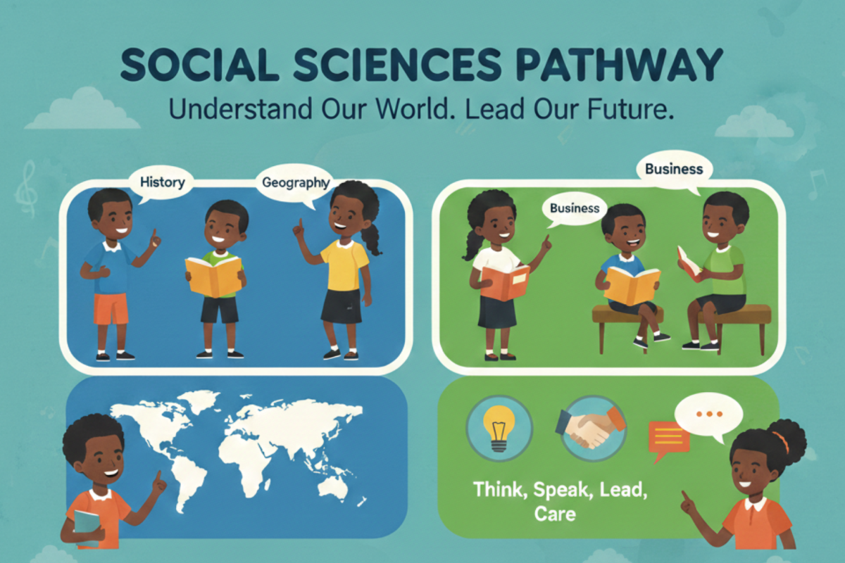 Social Sciences are about how people live, work, and make decisions together. If you like talking to others, learning about history, asking questions, or understanding what is fair and right, this pathway may be for you. Social Sciences help explain how families, communities, and countries work.